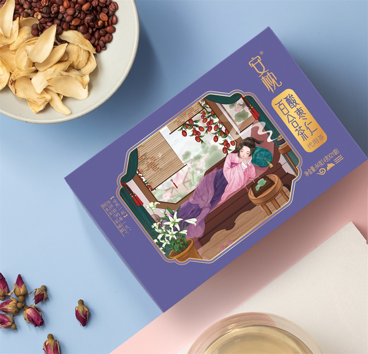 健食工坊本次有四個(gè)系列產(chǎn)品,每個(gè)產(chǎn)品的針對(duì)不同的人群,且擁有獨(dú)立的產(chǎn)品名稱:閨語(yǔ)、安枕、箐翡、燕影。從品名中我們就能夠看得出產(chǎn)品的訴求點(diǎn),幾款產(chǎn)品都具有中藥的功效特點(diǎn),而這些是不允許在包裝上面進(jìn)行展示的,那么如何在不違背廣告法和包裝規(guī)范的情況下體現(xiàn)其產(chǎn)品的藥用養(yǎng)生價(jià)值呢?