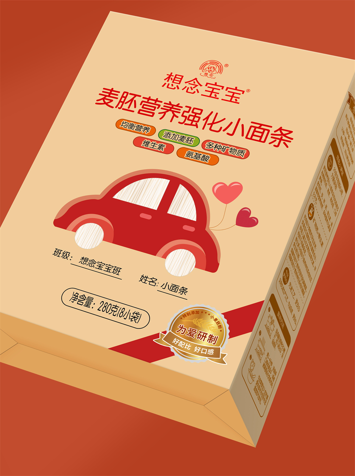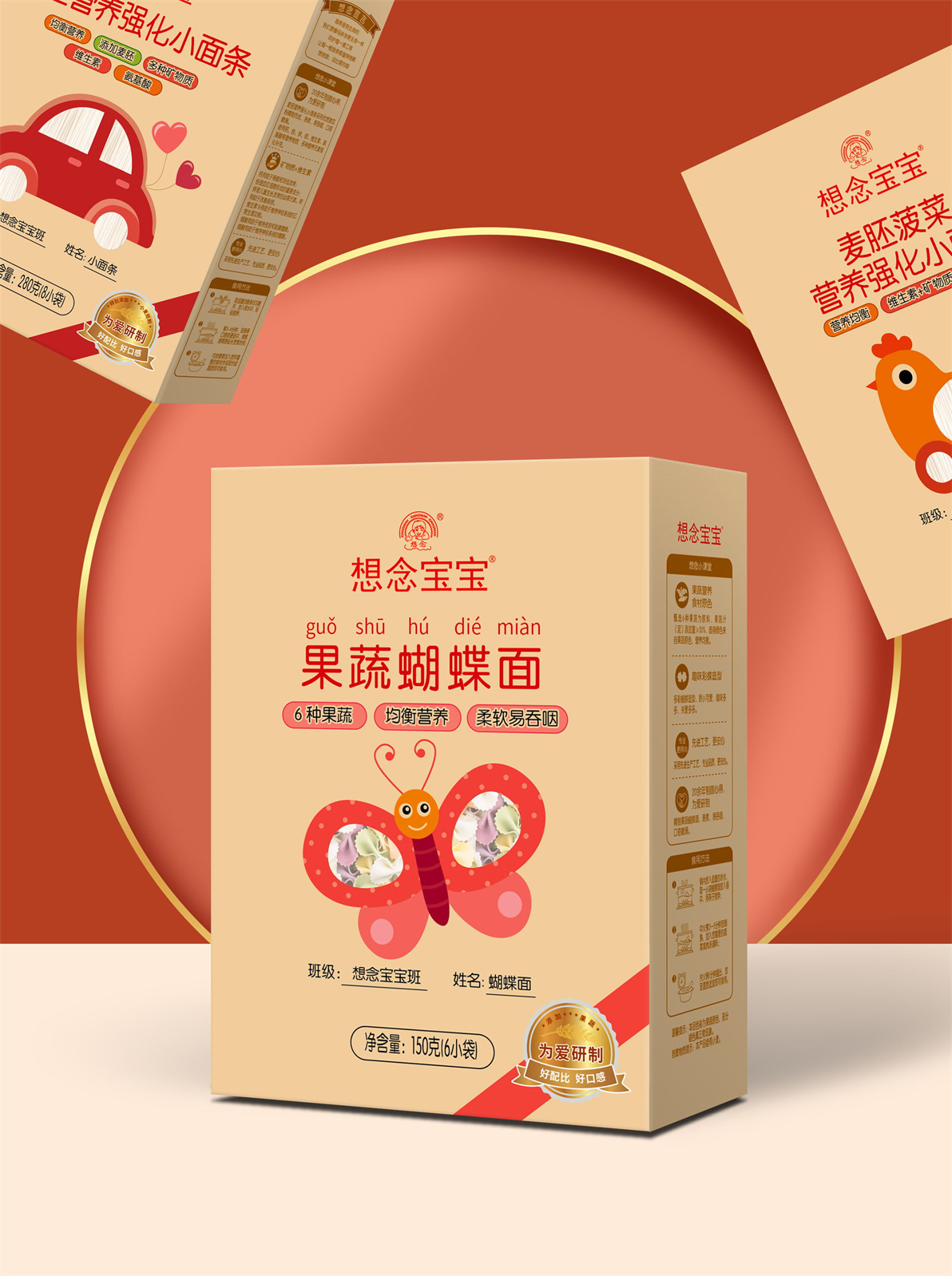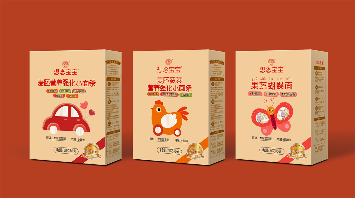 在打造這款產(chǎn)品的時(shí)候至覺(jué)對(duì)寶寶及兒童面進(jìn)行調(diào)研,市場(chǎng)均以卡通、色彩絢麗為主的視覺(jué)效果。那么想念二十年制面心得,為愛(ài)研制此款無(wú)添加健康安全的產(chǎn)品,那么至覺(jué)認(rèn)為用牛皮紙材質(zhì)會(huì)更符合產(chǎn)品理念:回歸天然,純凈無(wú)添加。